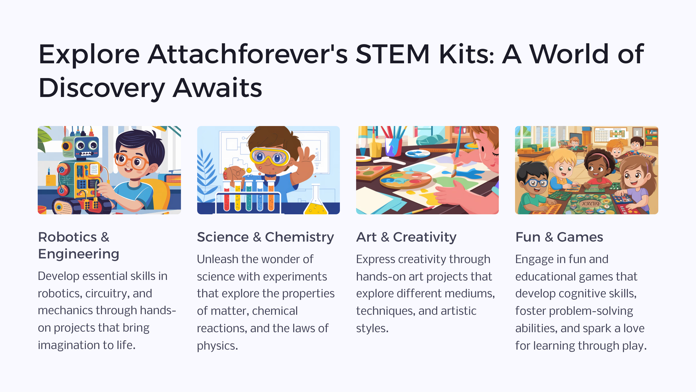 Unleash creativity and problem-solving with Attach Forever's engineering kits! Kids can design,...